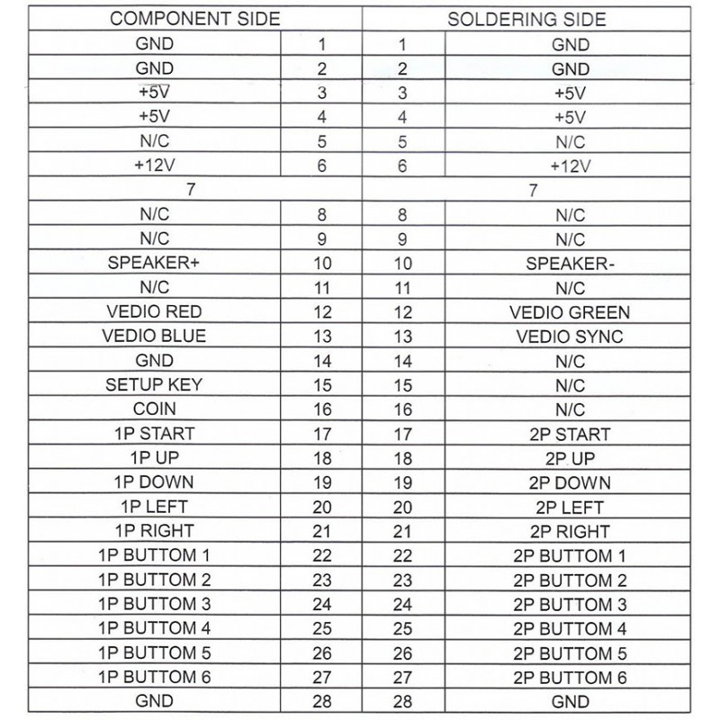 Vous retrouverez toutes la connectique: peigne Jamma 2x28 broches, connecteur écran cathodique, chaîne de masses pour les joysticks et boutons...